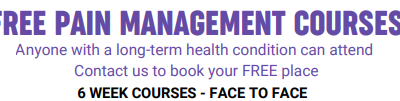 FREE PAIN MANAGEMENT COURSES – Anyone with a long-term health condition can attend. Contact us to book your FREE place – 6 WEEK COURSES – FACE TO FACE ...