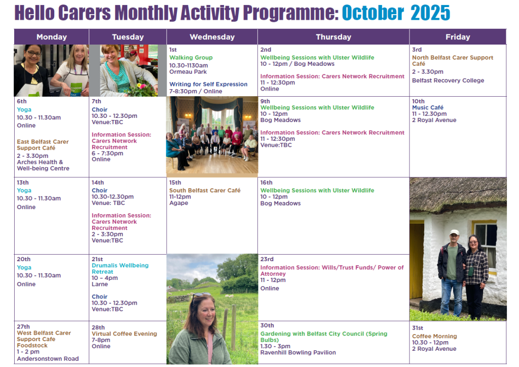The Hello Carers – October Activity programme is now available for you to book your place.